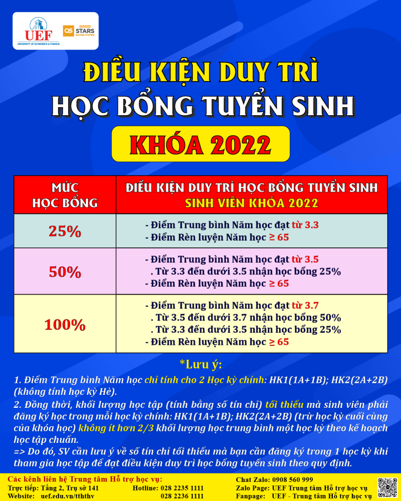 3. Điều kiện duy trì Học bổng Tuyển sinh Khóa 2022