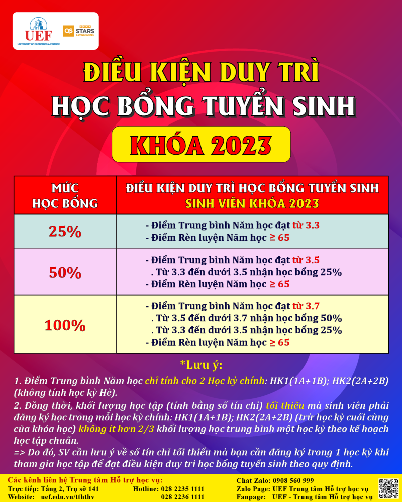 Điều kiện duy trì học bổng tuyển sinh