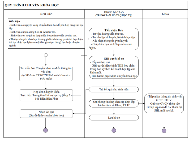 - Thủ tục chuyển khóa học thường phát sinh trong quá trình thực hiện thủ tục nhập học lại (sau một thời gian tạm dừng) học hoặc chuyển ngành.