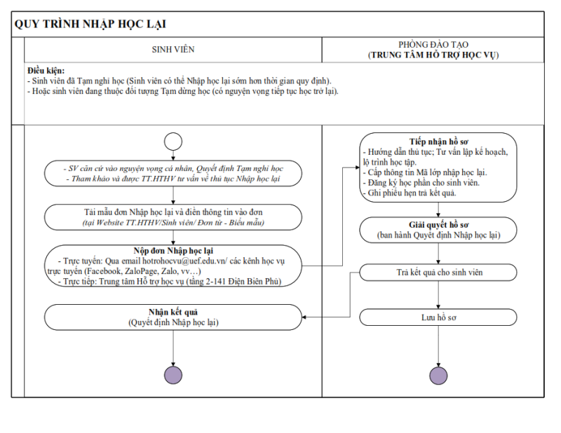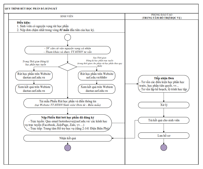 - Sinh viên phải tự viết đơn gửi Trung tâm Hỗ trợ học vụ.