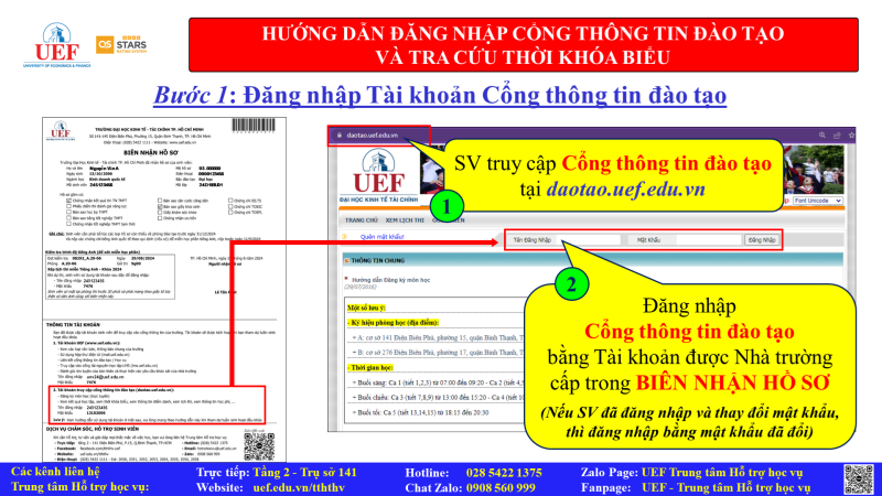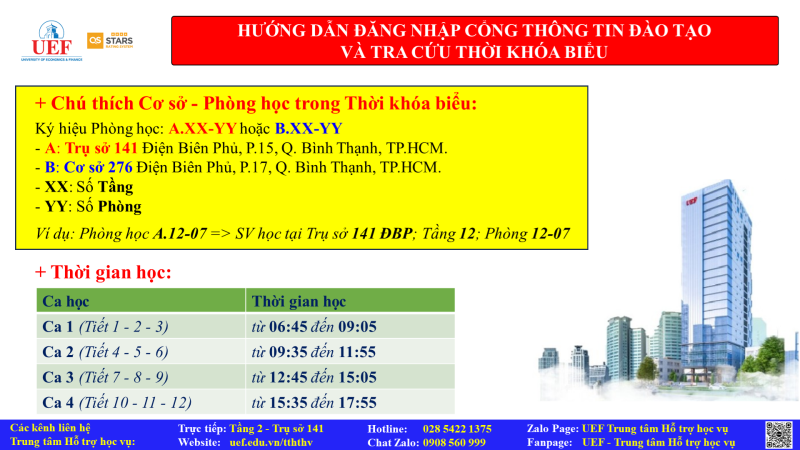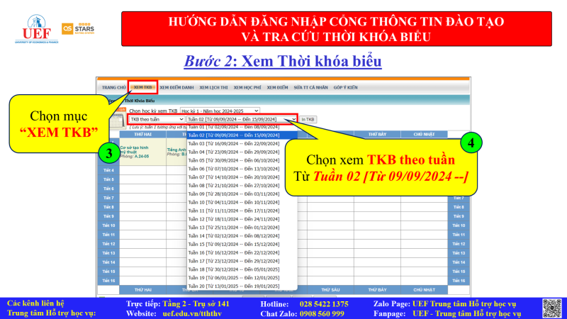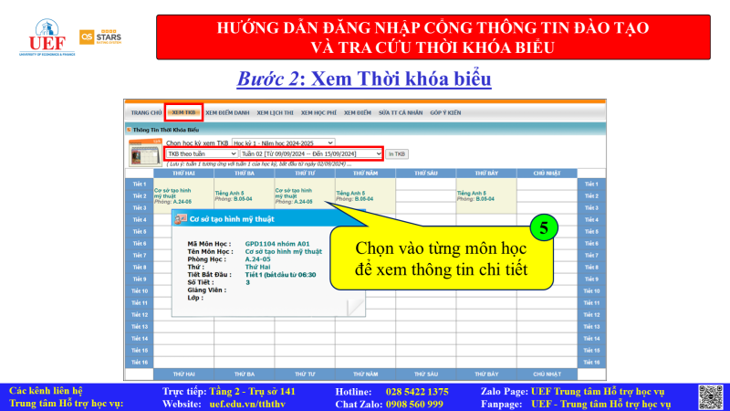 - Sinh viên Khóa 2024 tra cứu Thời khóa biểu Học kỳ 1A+1B, Năm học 2024-2025 tại https://daotao.uef.edu.vn/, từ ngày 05/09/2024