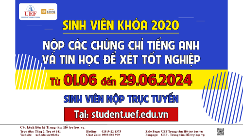 SINH VIÊN KHÓA 2020 NỘP CÁC CHỨNG CHỈ TIẾNG ANH VÀ TIN HỌC ĐỂ XÉT TỐT NGHIỆP BẰNG HÌNH THỨC TRỰC TUYẾN