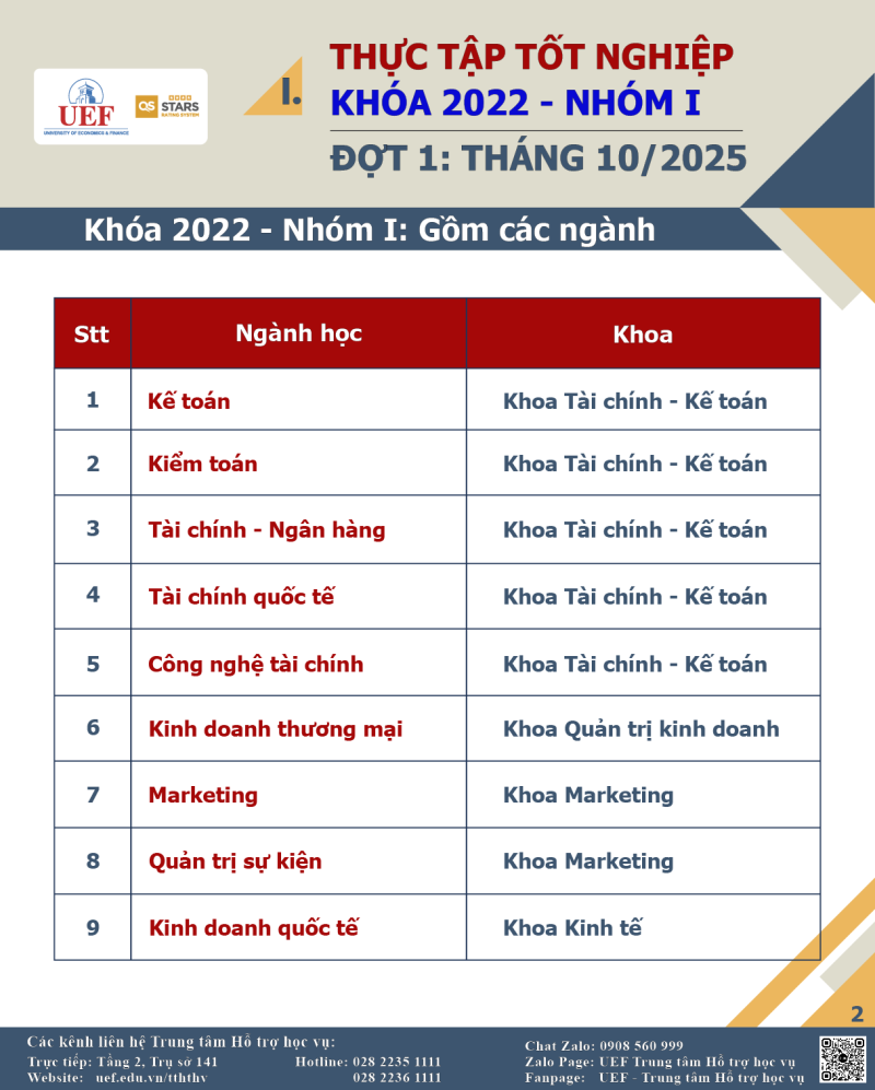I. THỰC TẬP TỐT NGHIỆP - KHÓA 2022