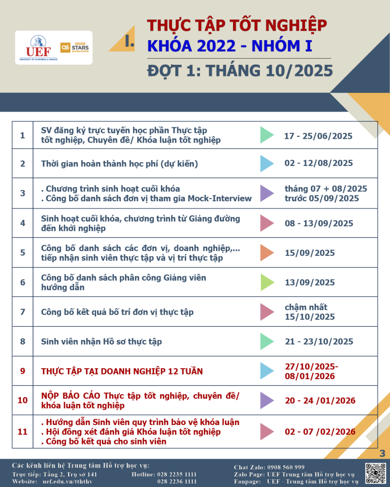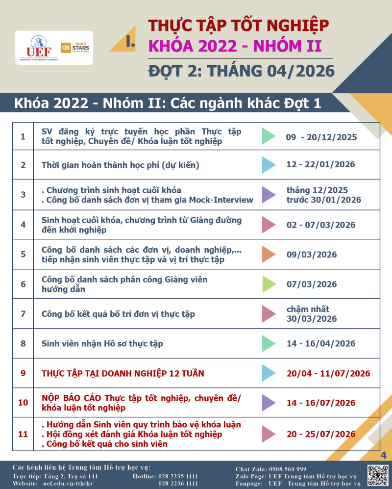 Vậy, các bạn sinh viên Khóa 2022 lưu ý các thông tin quan trọng theo kế hoạch để chủ động sắp xếp lộ trình học tập cá nhân phù hợp, nhằm có thể đủ điều kiện Xét tốt nghiệp đúng tiến độ nhé.