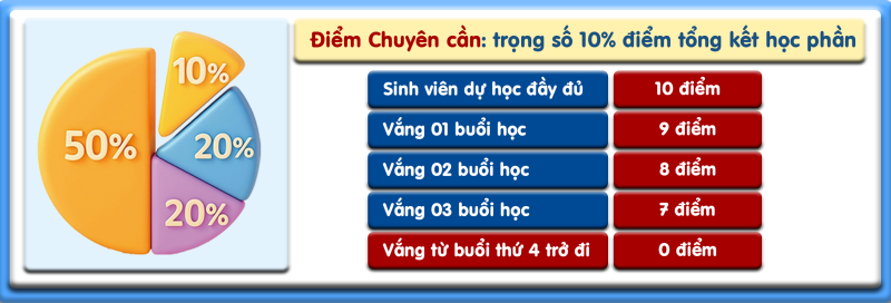 Trong đó, điểm chuyên cần chiếm 10% tổng điểm học phần.