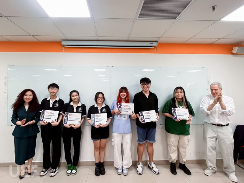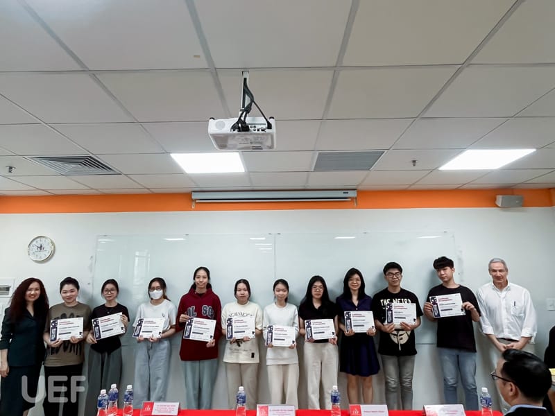 Sinh viên tham gia khóa học cũng được GS. Shapiro trao chứng nhận hoàn thành ở buổi học cuối.