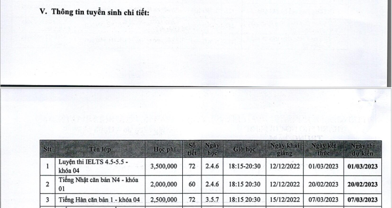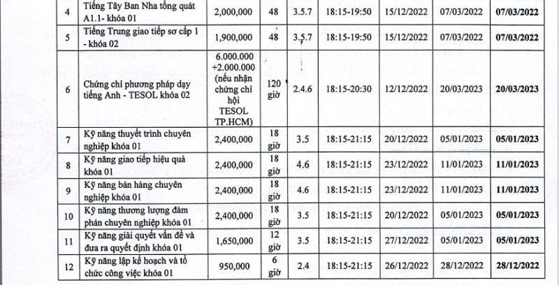 Lịch chiêu sinh các khóa học kỹ năng mềm và khóa học tự chọn tháng 12/2022