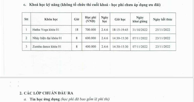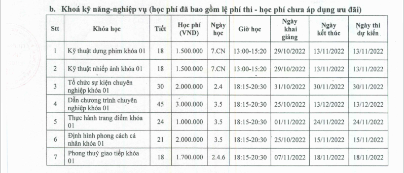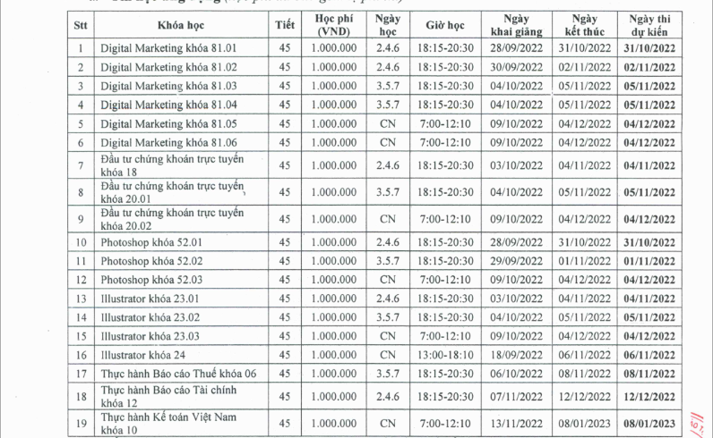 Lịch chiêu sinh các khóa học tháng 9+10+11 năm 2022