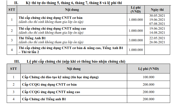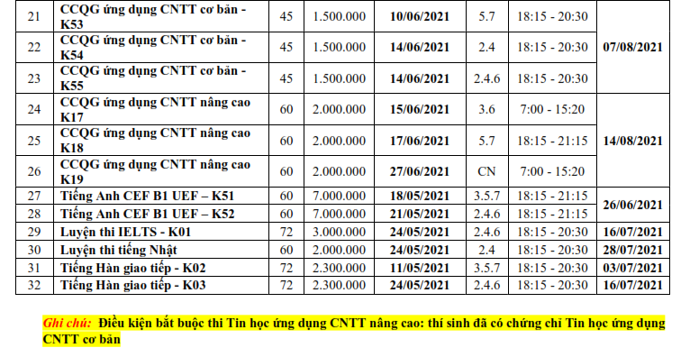 Lịch khai giảng dự kiến các khóa học ngắn hạn tháng 6+7/2021