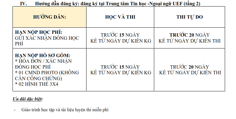 Thông tin liên hệ: Trung tâm Tin học - Ngoại ngữ UEF (Tầng 2)