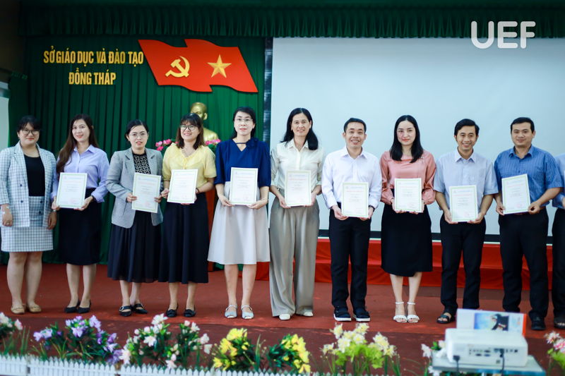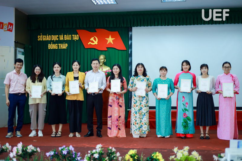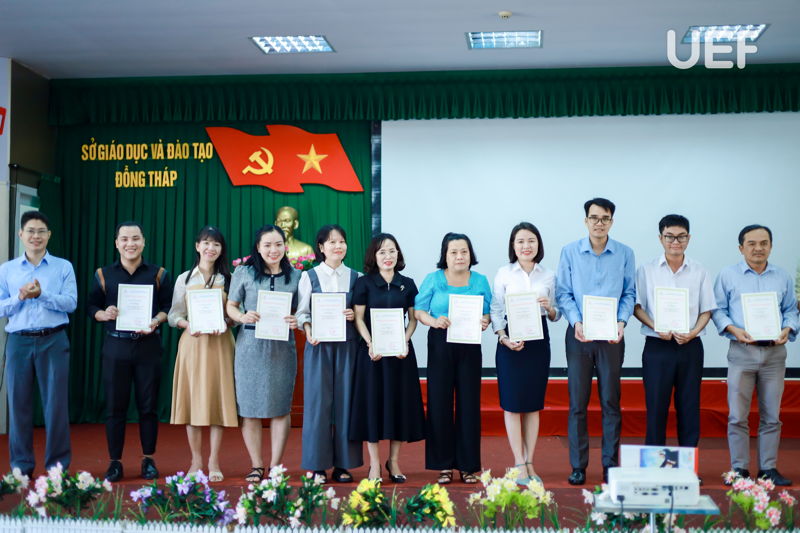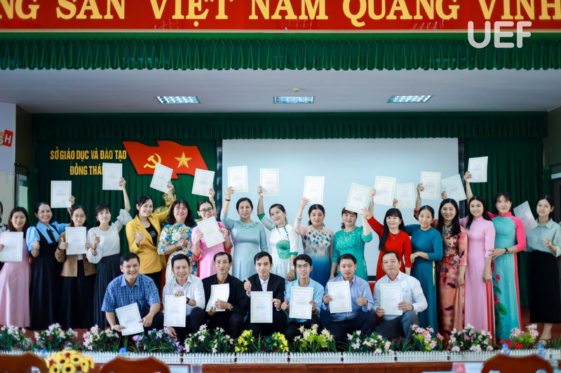 Lễ bế giảng có sự góp mặt của lãnh đạo UEF, Ban Lãnh đạo Sở GD&ĐT tỉnh Đồng Tháp, giảng viên và các thầy cô tham gia khóa học