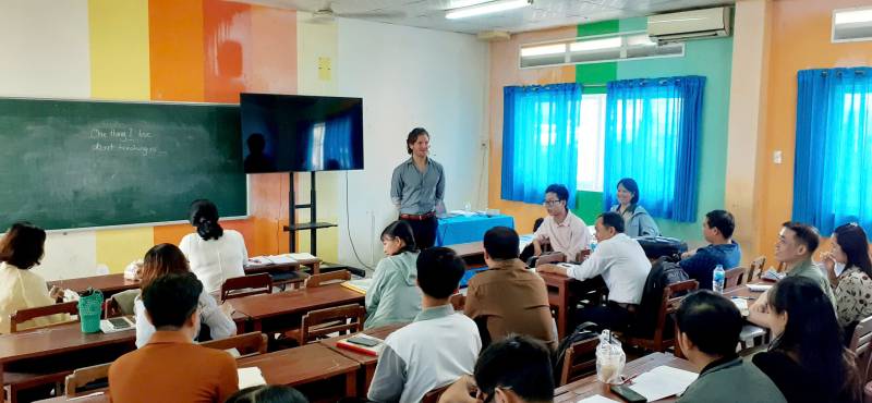 tiếng Anh và ứng dụng công nghệ thông tin. Những nội dung chuyên sâu như kỹ thuật scaffolding, tạo môi trường học tập, và ứng dụng AI trong giảng dạy đã giúp các học viên không chỉ cải thiện khả năng chuyên môn mà còn nâng cao năng lực sáng tạo và tư duy phản biện. Ngoài những giờ học lý thuyết và thực hành được đứng lớp bởi các giảng viên người Việt Nam, các học viên còn được tham gia những giờ luyện phát âm trực tiếp với giáo viên người nước ngoài.