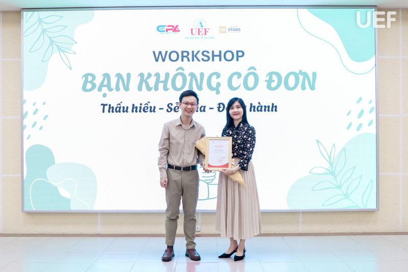 Trong hành trình đại học, bên cạnh việc học tập và rèn luyện, đời sống tinh thần của sinh viên cũng là yếu tố được UEF đặc biệt quan tâm. Với mong muốn đồng hành với sinh viên trong cả những khoảnh khắc dễ tổn thương nhất, chiều ngày 22/5, Trung tâm Tham vấn tâm lý và Hỗ trợ pháp luật UEF đã tổ chức workshop “Bạn không cô đơn”. Chương trình giúp sinh viên nâng cao nhận thức, tự chăm sóc sức khỏe tinh thần và học cách lắng nghe chính mình.
