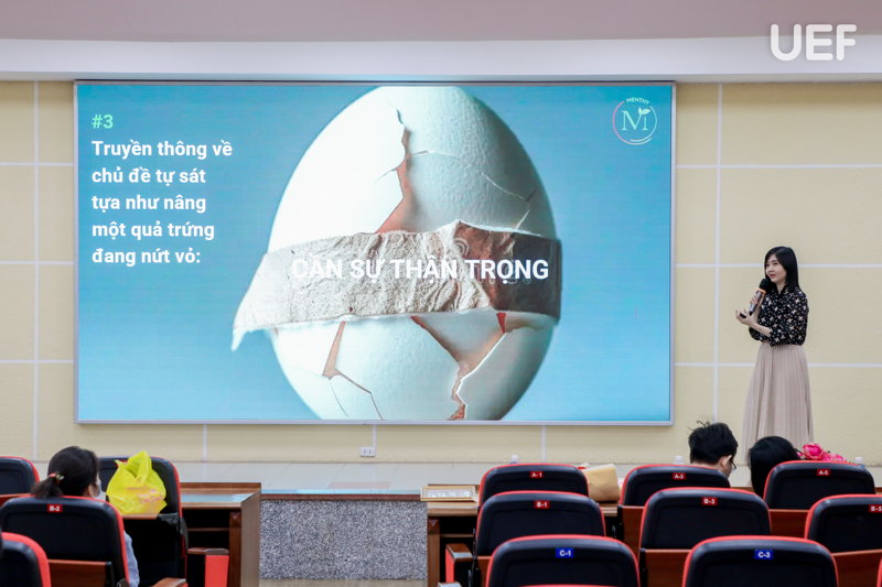 Bằng chuyên môn và trải nghiệm thực tế, ThS. Hồ Tâm Đan đã giúp sinh viên hiểu rõ hơn về các vấn đề nhạy cảm nhưng rất thật như hành vi tự hại, suy nghĩ tiêu cực và đặc biệt là nguy cơ quyên sinh trong đời sống sinh viên hiện nay. Chị khẳng định: “Tự hại, tự tử không phải là sự yếu đuối, mà là dấu hiệu của sự kiệt sức. Giống như một đoàn tàu mất phanh, những người trong cuộc cần sự trợ giúp từ bên ngoài để có thể dừng lại”.