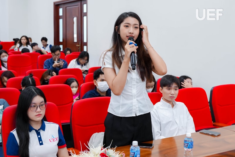 Bên cạnh đó, có nhiều bạn trẻ Nhà UEF khi bước vào môi trường đại học cũng cảm thấy hụt hẫng khi chưa thể làm quen ngay với sự thay đổi. Diễn giả chia sẻ thêm về hành trình phía trước, khuyến khích các bạn tập trung vào bản thân, tìm kiếm những điều khiến mình hạnh phúc và tận dụng cơ hội để phát triển. Điều quan trọng là mỗi người cần cho mình thời gian để thích nghi, kết nối và dần tìm thấy ý nghĩa trong từng trải nghiệm.