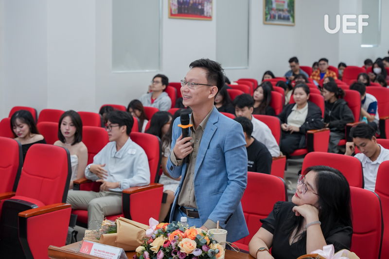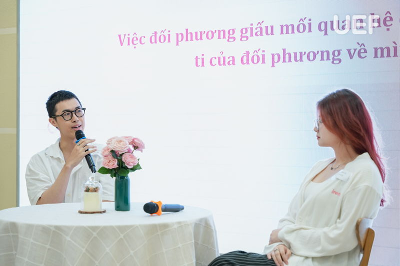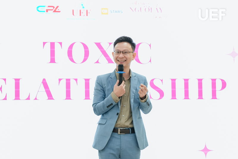Chương trình khởi động với phần chia sẻ những thông tin hữu ích của ThS. Nguyễn Anh Khoa về chủ đề “Toxic Relationship”. Thầy đã giúp các bạn sinh viên hiểu được mối quan hệ độc hại là như thế nào, cũng như chỉ ra bản chất và đặc điểm biểu hiện của mối quan hệ không lành mạnh này. Bằng việc nhìn nhận ra được những mối quan hệ độc hại, hoặc có xu hướng đó xung quanh mình, UEFers có thể chủ động tránh hoặc nói lên tiếng nói của mình để có hướng giải quyết, cùng nhau xây dựng sự liên kết chặt chẽ, tốt đẹp hơn.