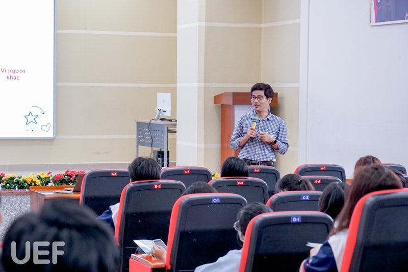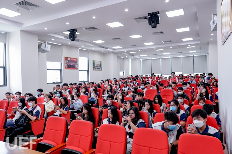 Đặc biệt, để thành công thì sinh viên phải có thái độ "học hết mình". Vì học hết mình giúp phát triển và khẳng định bản thân, giúp bứt phá nhằm tạo sự khác biệt trong thế giới phẳng là điều mà diễn giả muốn nhắn gửi cho các tân sinh viên 2k5 Nhà UEF.