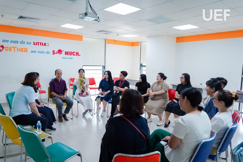 Các thầy cô Nhà UEF thực hành hoạt động trải nghiệm tâm lý cùng chuyên gia