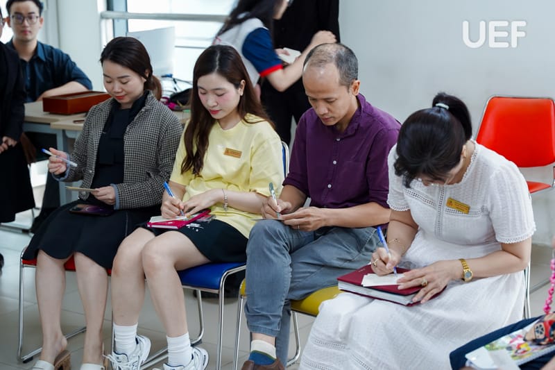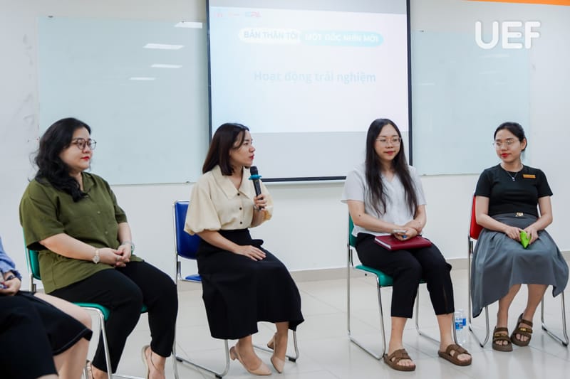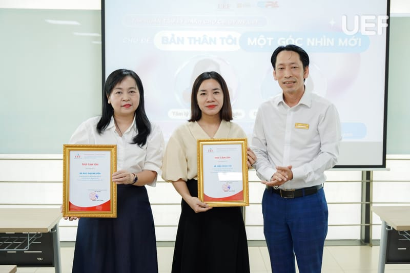 Nhằm nâng cao nhận thức và kỹ năng chăm sóc sức khỏe tinh thần cho đội ngũ cán bộ - giảng viên - nhân viên UEF, chiều ngày 18/4, Trung tâm Tham vấn tâm lý và Hỗ trợ pháp luật phối hợp với Văn phòng trường tổ chức buổi tập huấn tâm lý với chủ đề “Bản thân tôi, một góc nhìn mới”. Chương trình với nhiều hoạt động thực hành giúp các thầy cô có thời gian suy ngẫm, chia sẻ và kết nối nhiều hơn.