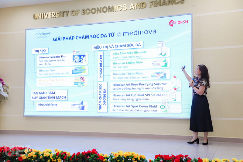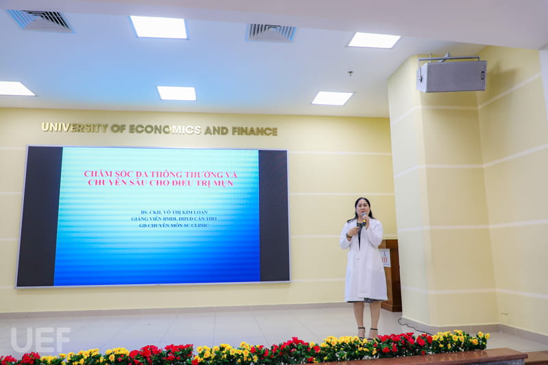 Hiểu được tầm quan trọng của giữ gìn làn da mịn màng đối với sinh viên, tại sự kiện, bà Võ Thị Kim Loan đã cung cấp nhiều bí quyết để UEFers phòng tránh các bệnh về da của mình một cách tốt nhất. Trong đó, rửa mặt sạch để loại bỏ các yếu tố gây viêm nhiễm, dưỡng ẩm và sử dụng chống nắng cho da là 3 bước quan trọng được diễn giả đặc biệt nhấn mạnh.