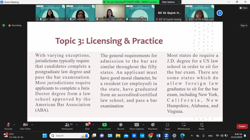 On the morning of November 11th, the UEF United States Law Center (USCL) and Integrity Law Club (ILC) successfully organized a talk show titled: "Studying and Practicing Law in the United States: Legal studies and Taxation - Opportunities and Challenges".