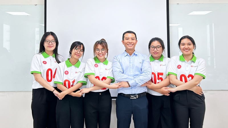 Học viên Hồ Trương Thanh Yến cùng các thầy cô UEF và ứng viên khác trong buổi phỏng vấn