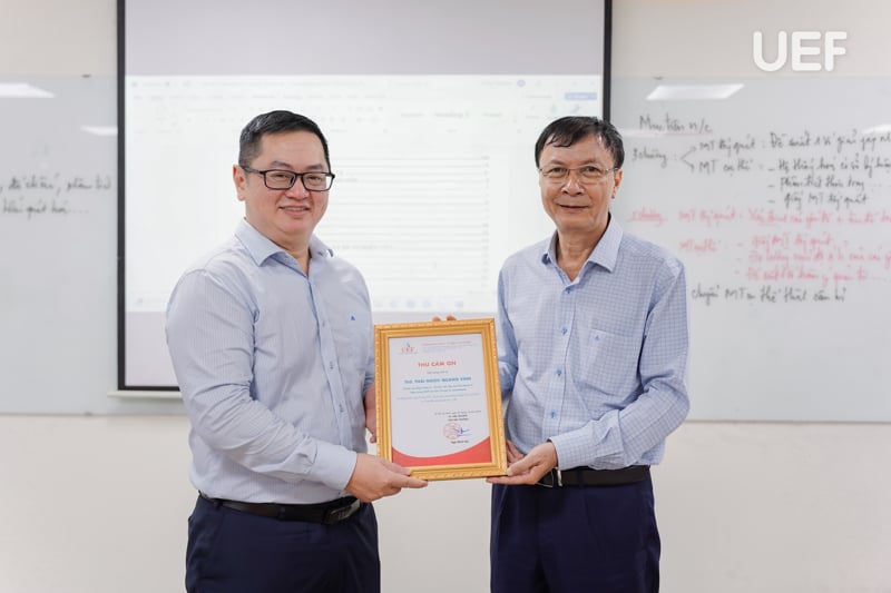 Đại diện Viện Đào tạo sau đại học UEF trao thư cảm ơn đến diễn giả