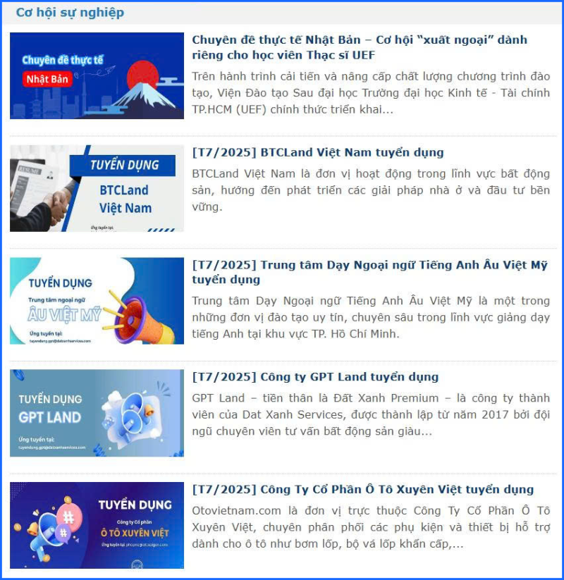 Chuyên mục “Cơ hội sự nghiệp” trên website Viện Đào tạo Sau đại học UEF