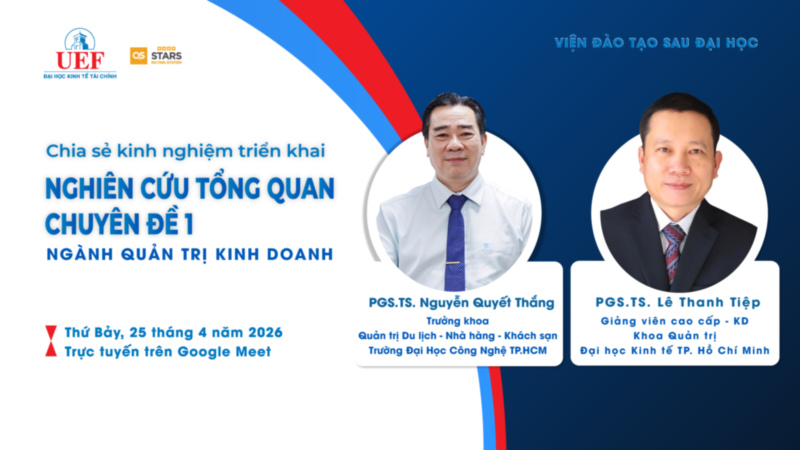 Nhằm hỗ trợ giảng viên và nghiên cứu sinh có thêm thông tin, kinh nghiệm để thực hiện Chuyên đề 1, Viện Đào tạo sau đại học UEF tổ chức chương trình chia sẻ học thuật với chủ đề “Chia sẻ kinh nghiệm triển khai nghiên cứu tổng quan - Chuyên đề 1” cho ngành Quản trị Kinh doanh.