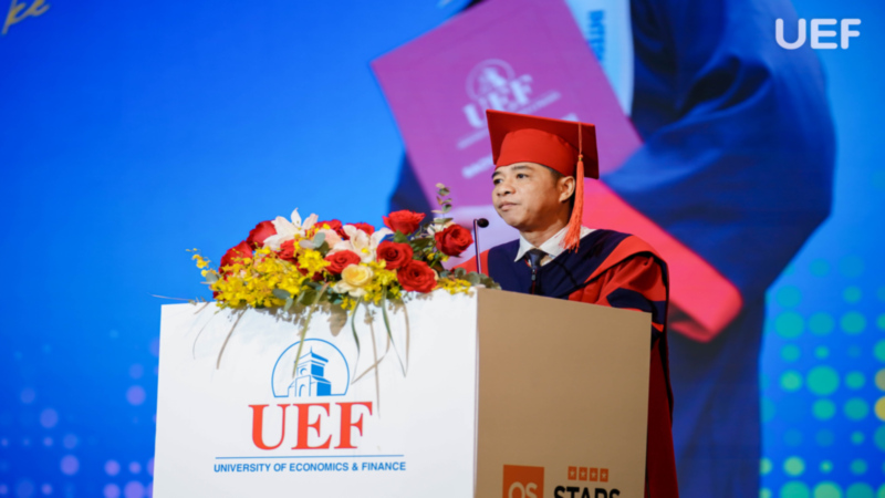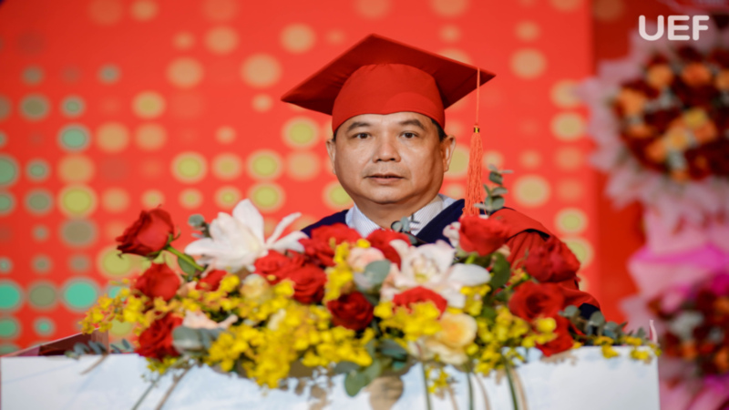 Trong diễn văn tốt nghiệp, TS. Nguyễn Thanh Giang – Bí thư Đảng ủy, Hiệu trưởng Nhà trường nhấn mạnh rằng lễ tốt nghiệp không chỉ là sự ghi nhận cho quá trình học tập và nghiên cứu bền bỉ, mà còn là dấu mốc khẳng định bản lĩnh, tinh thần hội nhập và khát vọng phát triển mà UEF luôn hướng đến trong triết lý giáo dục.