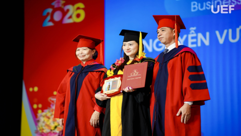 Sáng ngày 17/4, UEF đã long trọng tổ chức Lễ Bế giảng và trao bằng tốt nghiệp đợt 1 năm 2026, vinh danh 2 Tân Tiến sĩ và 153 Tân Thạc sĩ đã hoàn thành chương trình đào tạo sau đại học. Đây là cột mốc quan trọng đánh dấu bước chuyển mình của các Tân Tiến sĩ, Tân Thạc sĩ trên hành trình học thuật và phát triển nghề nghiệp.