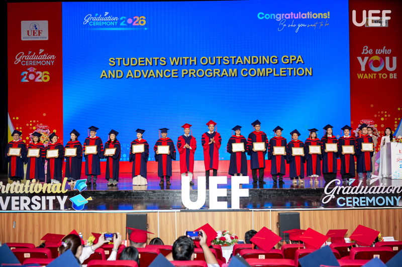 Lễ Bế giảng và trao bằng tốt nghiệp đợt 1 năm 2026 khép lại trong niềm tự hào và kỳ vọng. Với hành trang tri thức được tích lũy tại UEF, các Tân Tiến sĩ và Tân Thạc sĩ được tin tưởng sẽ tiếp tục lan tỏa giá trị tri thức, bản lĩnh hội nhập và tinh thần trách nhiệm trong cộng đồng.