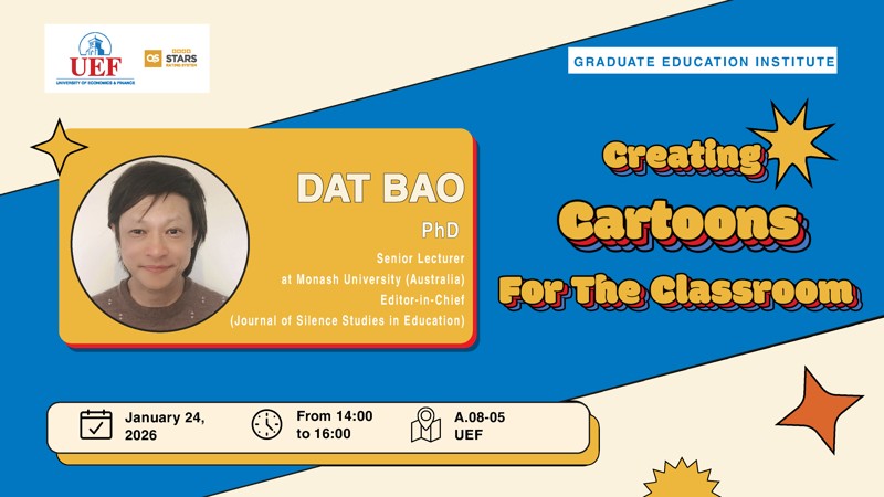 Trong bối cảnh giáo dục ngày càng đề cao trải nghiệm người học, việc tích hợp các yếu tố trực quan, sinh động vào bài giảng được xem là một hướng tiếp cận hiệu quả. Thấu hiểu điều đó, ngày 24/01/2026, Viện Đào tạo sau đại học UEF sẽ tổ chức chuyên đề học thuật "Creating Cartoons for the Classroom”.