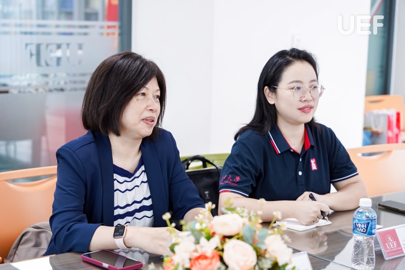 Đại diện phía UEF có TS. Đỗ Hữu Nguyên Lộc – Phó Hiệu trưởng, TS. Trương Quang Dũng – Viện trưởng Viện Đào tạo Sau đại học, ThS. Nguyễn Phạm Hải Hà và ThS. Huỳnh Quốc Phong – Phó Viện trưởng Viện Đào tạo Sau đại học cùng TS. Nguyễn Thị Lan – Trưởng ngành Ngôn ngữ Trung Quốc, Phó Trưởng Khoa Ngôn ngữ và Văn hóa quốc tế.