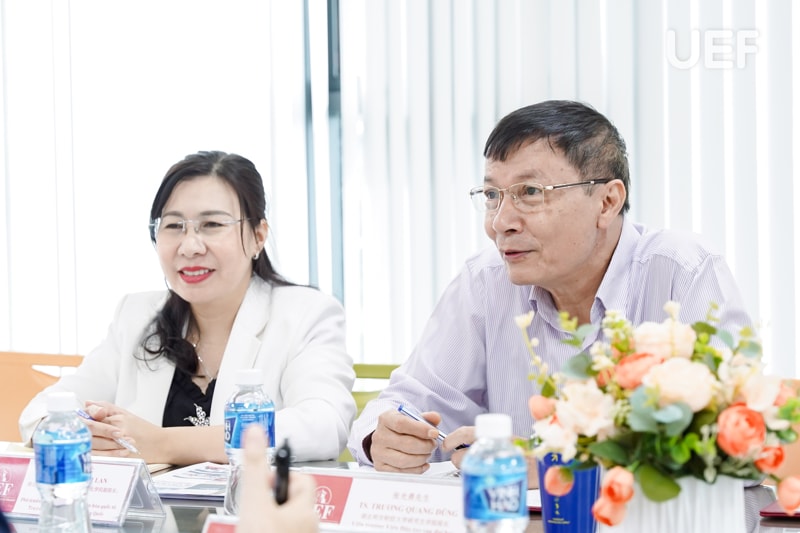 Phát biểu tại buổi làm việc, TS. Đỗ Hữu Nguyên Lộc nhấn mạnh rằng UEF chú ý mở rộng mối quan hệ với các đối tác quốc tế để mang lại các chương trình học chất lượng cao đáp ứng nhu cầu phát triển kỹ năng và tri thức cho người học. Thầy cũng cho biết những kỳ vọng về một mối quan hệ hợp tác lâu dài với Trường Đại học Quảng Tây, đặc biệt trong việc phát triển các chương trình đào tạo mang tính đột phá và thực tiễn.