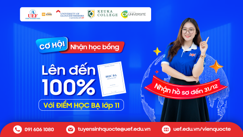 Chỉ với điểm học bạ HK1 lớp 11 hoặc chứng chỉ IELTS, bạn đã có thể xét học bổng lên đến 100% cho chương trình Cử nhân Quốc tế...