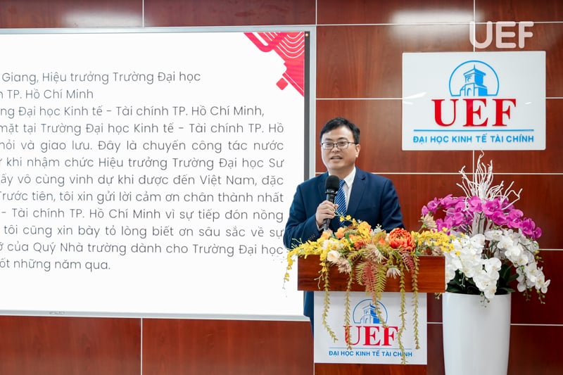 Phát biểu tại buổi lễ, TS. Nguyễn Thanh Giang nhấn mạnh: “Trong định hướng phát triển của UEF, quốc tế hóa luôn là một trong những mục tiêu hàng đầu. Chương trình đào tạo của chúng tôi không chỉ được bám sát với định hướng quốc tế mà còn mở ra nhiều cơ hội giao lưu cho sinh viên. Chúng tôi tin rằng, buổi ký kết này sẽ là cầu nối giúp sinh viên và giảng viên của cả hai trường hiểu thêm về văn hóa, lịch sử, cũng như thúc đẩy các dự án nghiên cứu và hợp tác trong tương lai”.