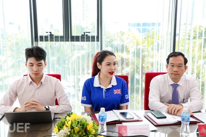 Về phía UEF có TS. Đỗ Hữu Nguyên Lộc - Phó Hiệu trưởng, Viện trưởng Viện Quốc tế; TS. Nguyễn Hồng Nhung - Phó Viện trưởng Viện Quốc tế. Đồng thời, buổi làm việc còn có sự tham dự của đại diện Trường Đại học Công nghệ TP.HCM (HUTECH): GS.TS. Lê Văn Cảnh - Phó Hiệu trưởng, ThS. Nguyễn Lan Hương - Phó Viện trưởng Viện Đào tạo Quốc tế.