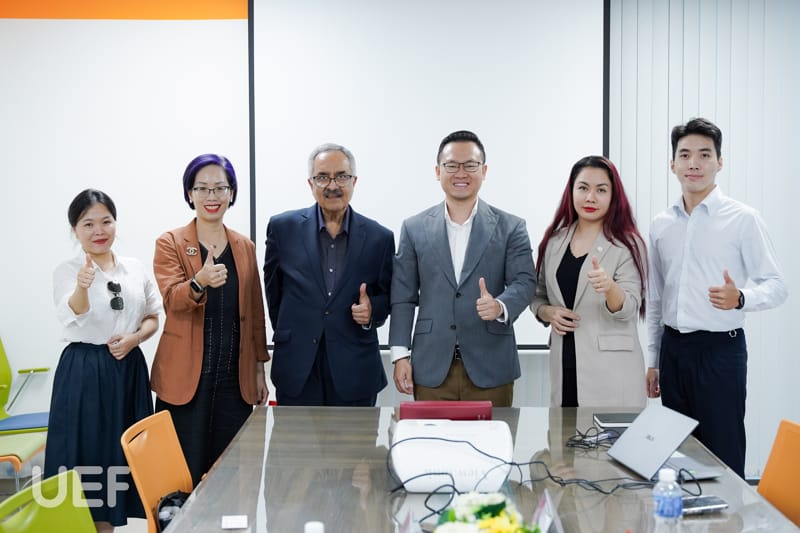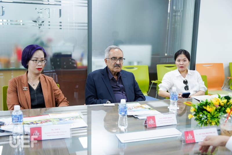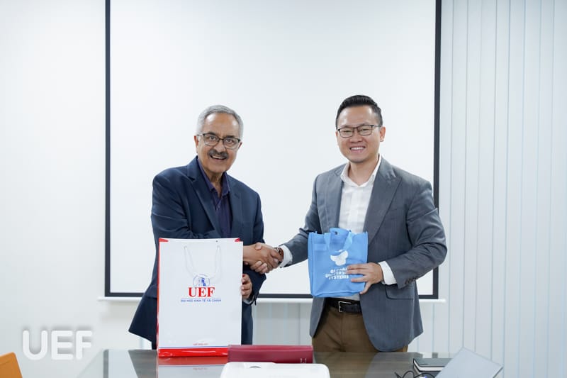 Đại diện GUS là GS. Ashraf Jawaid - CEO International and Partnership cùng hai thư ký. Về phía UEF có TS. Đỗ Hữu Nguyên Lộc - Phó Hiệu trưởng, Viện trưởng Viện Quốc tế; cô Nguyễn Hồng Nhung - Phó Viện trưởng Viện Quốc tế.