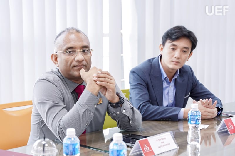 Đại diện UEF tham dự có TS. Đỗ Hữu Nguyên Lộc - Phó Hiệu trưởng, TS. Majo Geogre - Trưởng khoa Kinh tế, TS. Nguyễn Kim Thoa - Phó Viện trưởng Viện Quốc tế, ThS. Nguyễn Bá Anh - Phó Viện trưởng Viện Quốc tế.