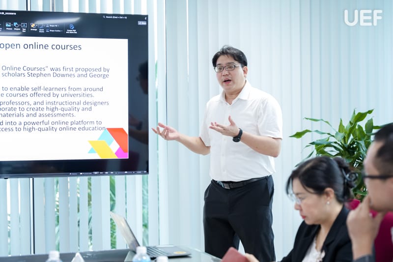 Chiều ngày 19/8, UEF đã có buổi làm việc với đại diện Chinese Culture University (CCU) - Đại học Văn hóa Trung Quốc, Đài Loan nhằm thảo luận cơ hội hợp tác trong phát triển các khóa học trực tuyến mở rộng (MOOCs) và đẩy mạnh quốc tế hóa giáo dục số.