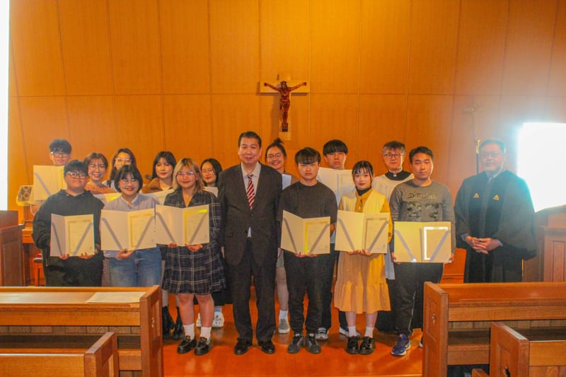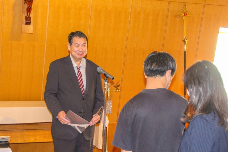 Sinh viên tham dự Lễ bế giảng chương trình “Fall Study Program 2023” trước sự chứng kiến của Thầy Phó Hiệu trưởng. Các bạn được gọi tên và làm lễ theo phong tục của Nhật Bản.