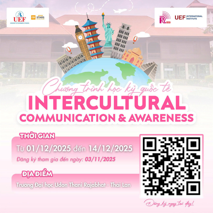 - Sinh viên đăng ký tham gia Chương trình Học kỳ quốc tế - Học kỳ 1B, năm học 2025 - 2026 tại Trường Đại học Udon Thani Rajabhat (Thái Lan) từ ngày ra thông báo đến ngày 03/11/2025 trực tiếp tại Viện Quốc tế hoặc Khoa Quan hệ công chúng và truyền thông.