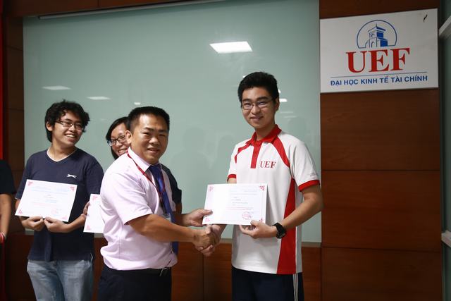 Thầy Ngô Cao Cường – Phó hiệu trưởng Nhà trường và Ban tổ chức trao giấy chứng nhận cho các bạn sinh viên tham gia chương trình Plus 3 – 2016