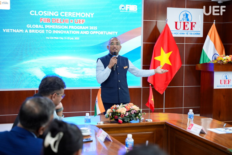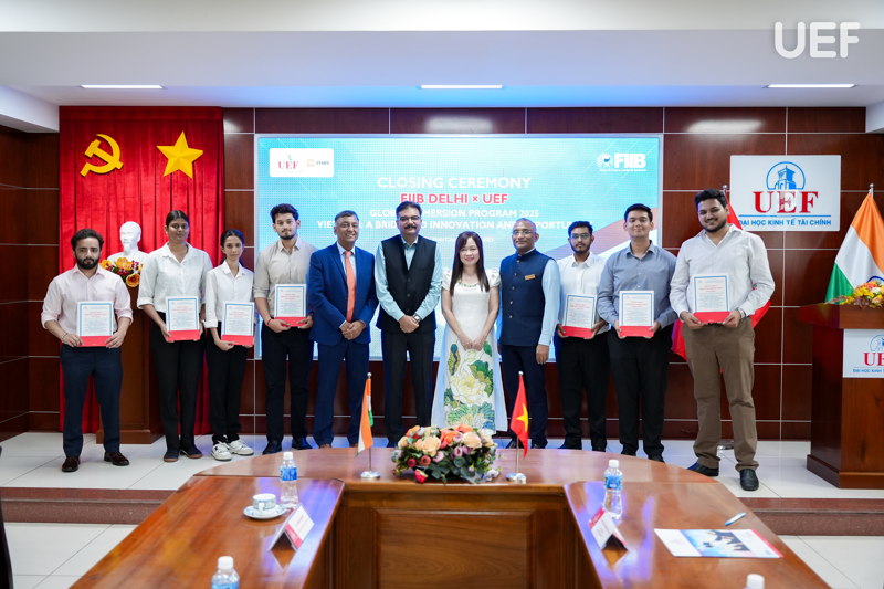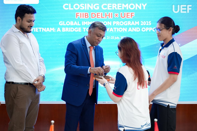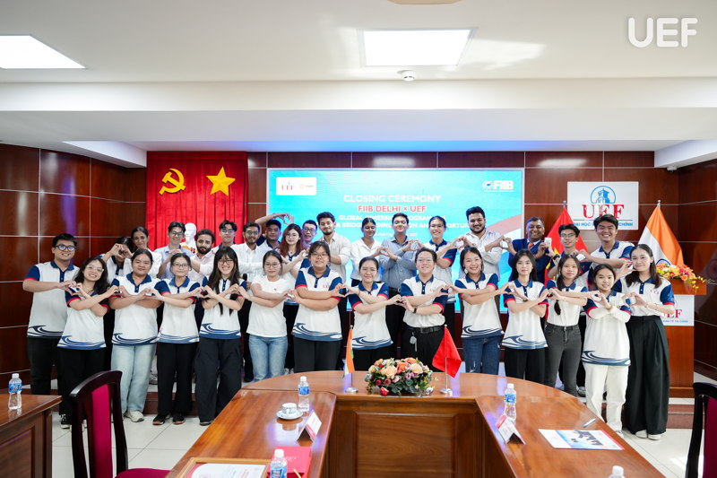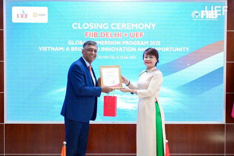 Sau 5 ngày học tập, khám phá, trải nghiệm tại Việt Nam, chiều ngày 25/7, chương trình giao lưu quốc tế năm 2025 chủ đề “Vietnam: A Bridge to Innovation and Opportunity” giữa UEF và đoàn học viên đến từ Fortune Institute of International Business (FIIB), Ấn Độ chính thức khép lại bằng buổi lễ tổng kết đầy ý nghĩa.