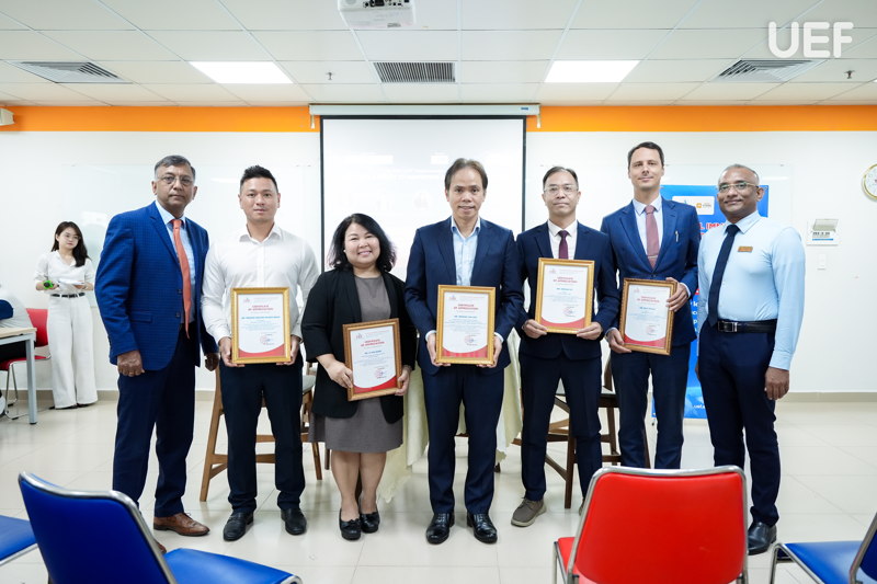 Tại sự kiện, TS. Đỗ Hữu Nguyên Lộc - Phó Hiệu trưởng UEF và TS. Majo George - Trưởng Khoa Kinh tế gửi lời chúc mừng đến các học viên quốc tế, đồng thời khẳng định UEF luôn sẵn sàng mở rộng hợp tác, đón nhận và đồng hành với các chương trình giao lưu học thuật tương tự trong tương lai.