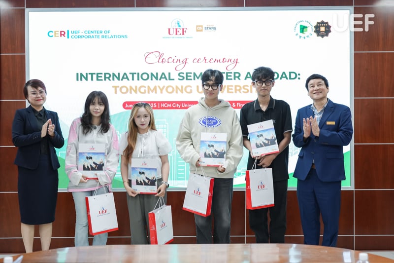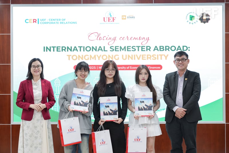 Chiều ngày 4/6, Trung tâm Hợp tác doanh nghiệp UEF đã tổ chức lễ tổng kết chương trình học kỳ quốc tế tại Trường Đại học Tongmyong (Hàn Quốc). Đây là dịp để các bạn nhìn lại chặng đường học tập trong môi trường quốc tế năng động, cùng những trải nghiệm học thuật và văn hóa phong phú tại Hàn Quốc.