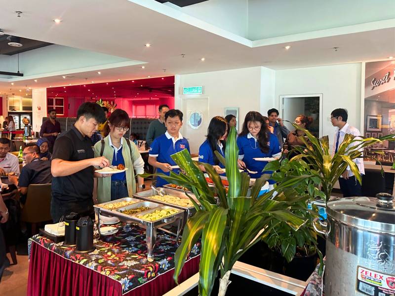 Bên cạnh đó, sinh viên Gloucestershire Vietnam cũng được tặng áo thun lưu niệm và chứng nhận tham gia chương trình từ phía nhà trường Peninsula. Sau phần giao lưu, đoàn được dẫn đi tham quan mô hình “campus-in-industry” của trường – nơi kết hợp giữa đào tạo học thuật và thực hành doanh nghiệp trong cùng một không gian. Sinh viên cũng đã dùng bữa trưa ngay tại khuôn viên trường để cảm nhận môi trường sinh hoạt thực tế của sinh viên Malaysia.
