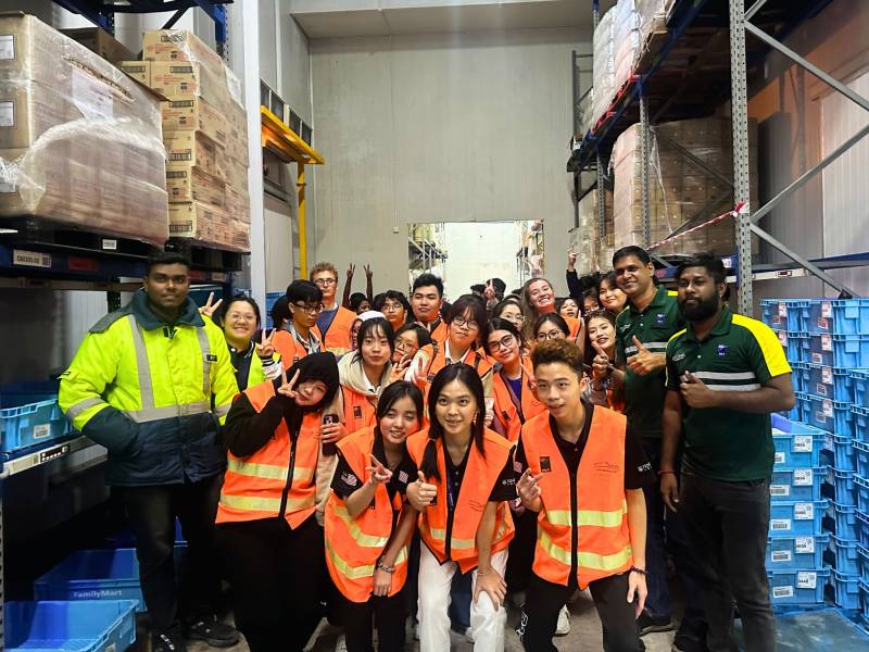 Buổi chiều, đoàn tiếp tục đến tham quan kho vận hành của công ty PKT Logistics Group – doanh nghiệp điều hành trực tiếp Peninsula College. Tại đây, sinh viên được giới thiệu về hệ thống kho hàng, kho lạnh phục vụ chuỗi siêu thị Walmart, và khu vực xử lý vận chuyển xe Tesla. Đặc biệt, sinh viên đã được tận mắt quan sát quy trình kiểm tra xe Tesla trước khi xuất xưởng, mang lại trải nghiệm thực tế sinh động về hoạt động logistics và chuỗi cung ứng hiện đại.