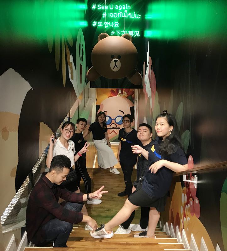 Với sự đồng hành của Đại học UTCC (Thái Lan), các bạn sinh viên đã vô cùng hào hứng khi tiếp xúc với những nhân vật LINE ngoài đời thực tại địa điểm thú vị này. Đặc biệt, trong chuyến học tập này, các bạn được tham quan trụ sở chính của công ty LINE tại Thái Lan. Tại đây, các bạn được học hỏi nhiều kiến thức mới về marketing tương tác (interactive marketing methods) của LINE.